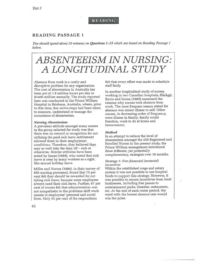 Absenteeism In Nursing: A Longitudinal Study Ielts Reading Answers